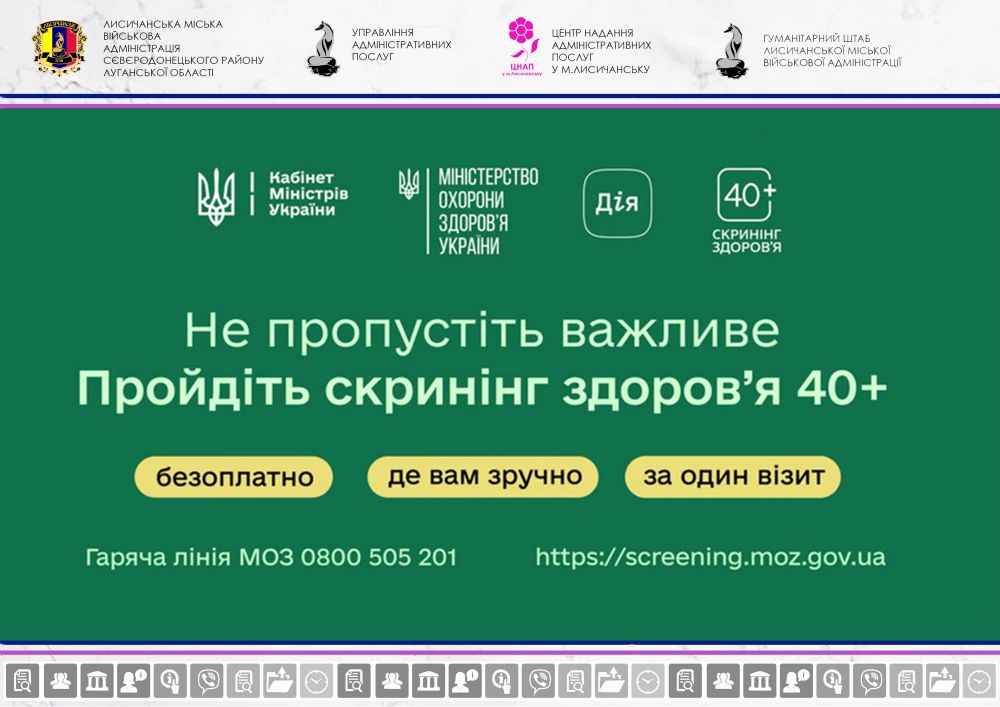 ЦНАП у м. Лисичанську запрошує мешканців громади подати заявку на проходження безкоштовного скринінгу здоров’я 40+!