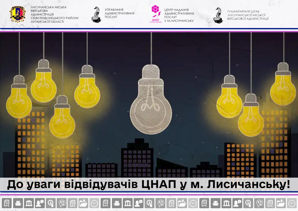 У зв’язку зі складними погодними умовами, запровадженням екстрених відключень електроенергії просимо заздалегідь погоджувати свій візит до ЦНАП у м. Лисичанську телефоном: