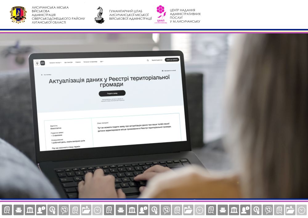Громадяни мають можливість актуалізувати свої персональні дані в Реєстрі територіальної громади зручним для себе способом — як онлайн, так і під час особистого звернення до адміністраторів ЦНАП м. Лисичанська.